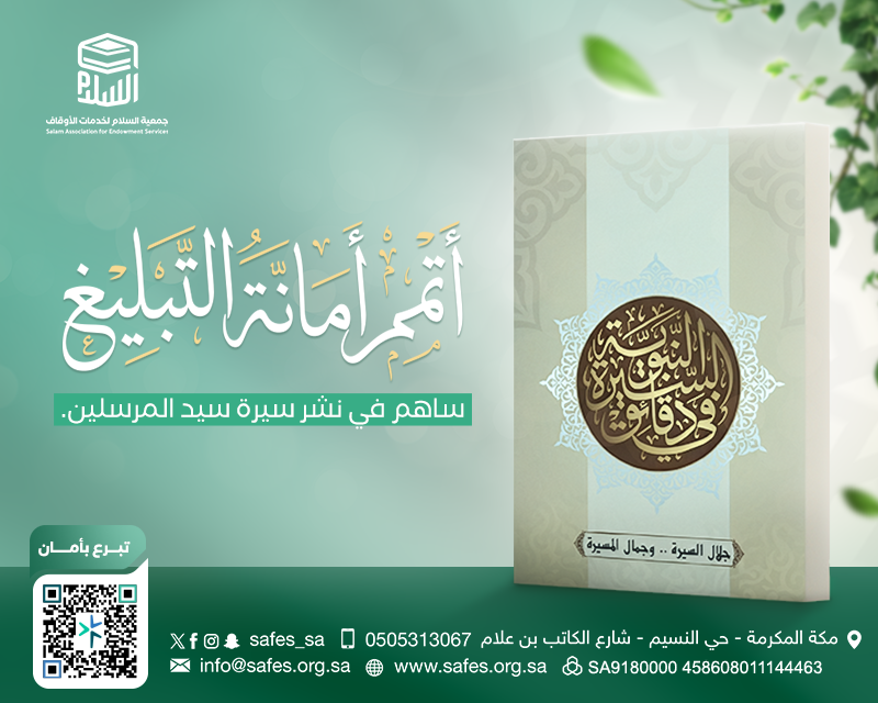 بمساهمتك اليوم تفتح آفاقاً جديدة لنشر السيرة النبوية وتشارك في أجر كل من قرأ حرفاً أو تعلم خلقاً أو اهتدى بهدي النبي الكريم فكن شريكاً في هذا الخير العظيم وساهم في طباعة وتوزيع كتيب السيرة في دقائق بكل لغات العالم للمساهمة والدعم يمكنك التواصل عبر الرابط المباشر أو أرقام الخدمة المخصصة لتكون جزءاً من هذا المشروع المبارك
